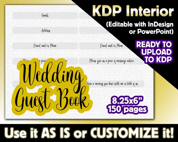 Wedding Guest Book Customizable Indesign Kdp Interior Etsy New Zealand